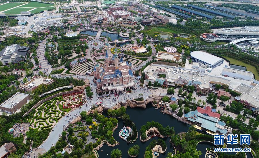 位于上海浦東的迪士尼樂(lè)園(2017年5月19日無(wú)人機(jī)拍攝)。 新華社記者 丁汀 攝