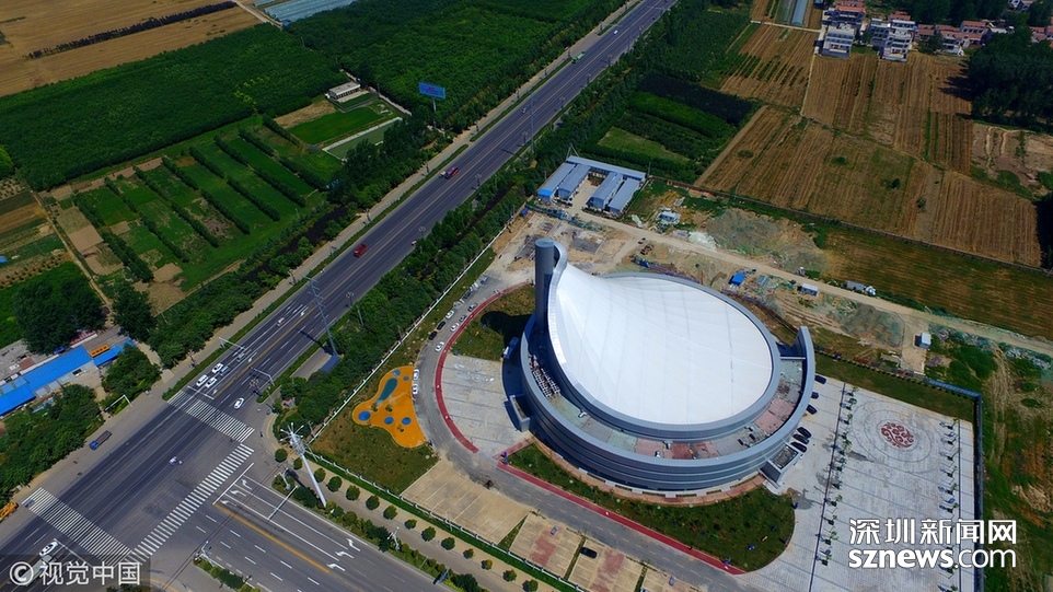 2018年6月13日,航拍河南淮陽(yáng)一座即將竣工落成的體育場(chǎng)館建筑,市民稱酷似一個(gè)石磨盤(pán)。