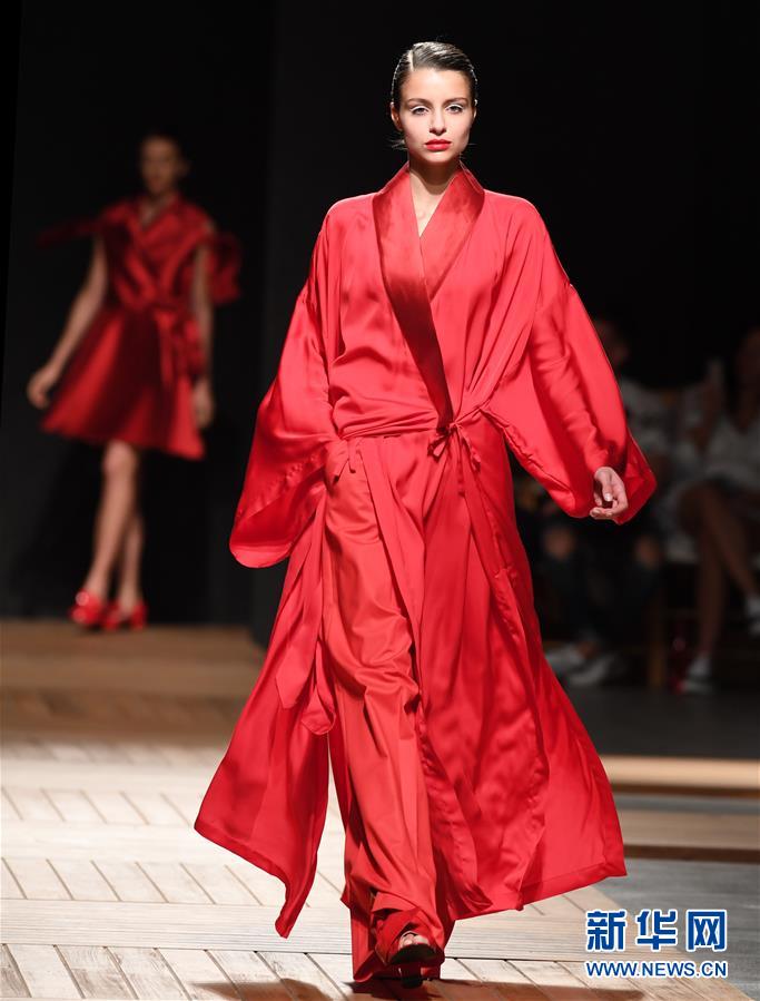 10月13日,在葡萄牙首都里斯本舉行的第51屆里斯本時裝周上,模特展示葡萄牙設計師路易斯·卡瓦略設計的新款時裝。新華社記者張立云攝