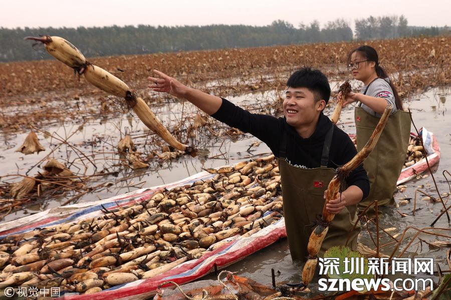 藕農(nóng)泥中“掘金” 初秋時(shí)節(jié)采藕忙