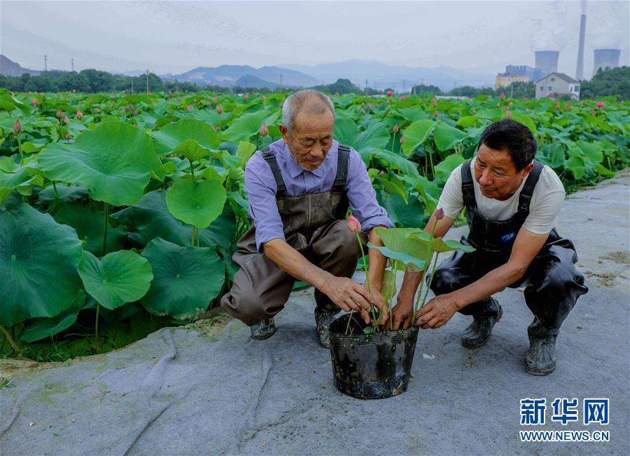 6月3日,荷農(nóng)們將觀賞性荷花裝盆準(zhǔn)備銷售。 進(jìn)入初夏時(shí)節(jié),浙江省湖州市長興縣呂山鄉(xiāng)圣蓮苑荷花基地內(nèi)200多畝30多種各色荷花競相開放,該基地也迎來了荷花銷售和旅游觀光的旺季。據(jù)介紹,呂山鄉(xiāng)是浙江省長興縣當(dāng)?shù)貍鹘y(tǒng)的蓮藕產(chǎn)區(qū),近年來開始逐步升級打造“荷花之鄉(xiāng)”。不同于傳統(tǒng)的種荷收藕的思路,當(dāng)?shù)亟柚吧鷳B(tài)+創(chuàng)意”的理念種植、銷售觀賞盆栽荷花,一畝觀賞性荷花的產(chǎn)值可達(dá)到8萬元,比普通種植蓮藕增收超過20倍,同時(shí)也推動(dòng)了鄉(xiāng)村旅游經(jīng)濟(jì),帶動(dòng)荷農(nóng)收入增長,助力鄉(xiāng)村振興。新華社記者徐昱 攝