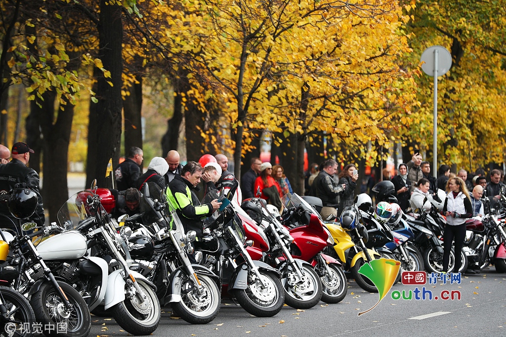 當(dāng)?shù)貢r(shí)間2018年10月13日,俄羅斯莫斯科,當(dāng)?shù)嘏e行摩托車(chē)游行。