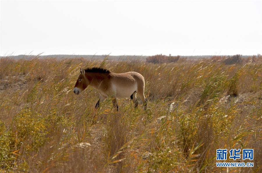 這是10月16日在敦煌西湖國家級自然保護(hù)區(qū)拍攝的普氏野馬。