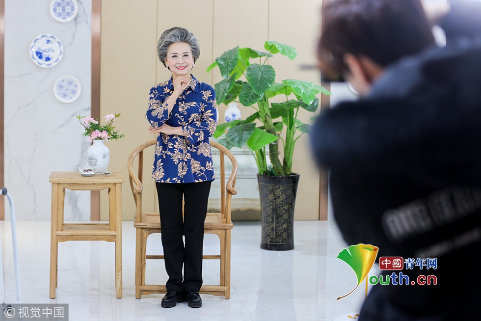 2018年3月3日,杭州,楊阿姨已經(jīng)71周歲,從2015年8月,她接下了淘寶拍攝的第一張單子開始,就走上了“淘女郎之路”。圖片作者:攝癮/視覺中國