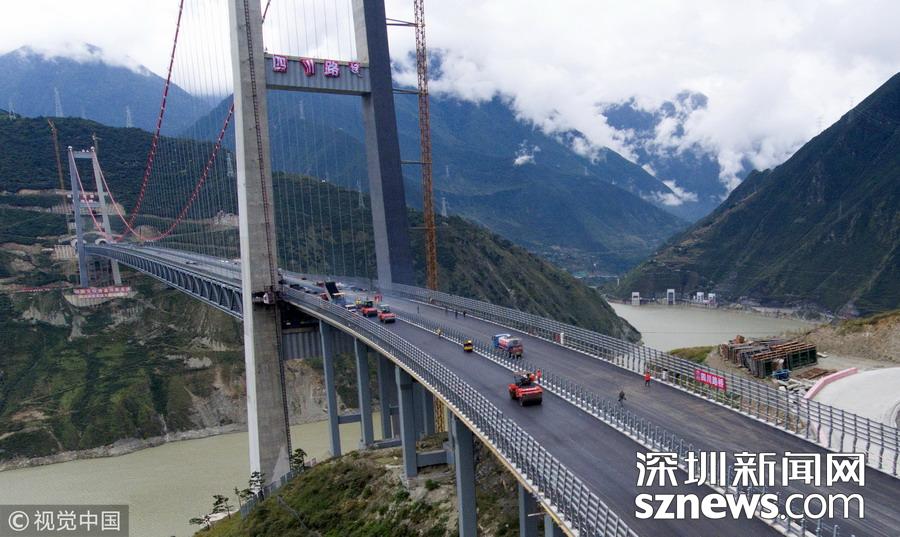 深圳新聞網(wǎng)訊  全長1411米、跨徑1100m、總造價超過10億元,被譽為“川藏第一橋”的雅康高速瀘定大渡河興康特大橋路面施工完成,具備了通行能力。