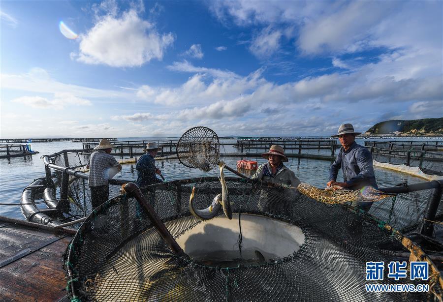 8月18日,南麂島海域的“海上牧場(chǎng)”養(yǎng)殖區(qū)內(nèi),漁民駕駛漁船進(jìn)行養(yǎng)殖作業(yè)。進(jìn)入8月,浙江省溫州市平陽縣南麂鎮(zhèn)海域上大片的大黃魚、貽貝等特色海產(chǎn)品養(yǎng)殖區(qū)域迎來豐收季節(jié),養(yǎng)殖戶們駕駛漁船在養(yǎng)殖區(qū)海域進(jìn)行打撈收獲,在碧海藍(lán)天下構(gòu)成了一幅“海上牧場(chǎng)”的美麗豐收景象。近年來,南麂鎮(zhèn)政府引導(dǎo)漁民養(yǎng)殖戶充分發(fā)揮“靠海吃?!钡馁Y源優(yōu)勢(shì),大力發(fā)展海洋養(yǎng)殖經(jīng)濟(jì)和海島旅游經(jīng)濟(jì),實(shí)現(xiàn)了南麂由“生態(tài)美”向“產(chǎn)業(yè)美”,“產(chǎn)業(yè)美”向“經(jīng)濟(jì)美”的轉(zhuǎn)變。同時(shí)該鎮(zhèn)堅(jiān)持以大黃魚、貽貝等為特色產(chǎn)業(yè)支撐,精準(zhǔn)發(fā)展高效海洋養(yǎng)殖業(yè),重點(diǎn)培養(yǎng)一批新型職業(yè)漁民,依靠專業(yè)技術(shù)支持,實(shí)現(xiàn)深海仿生養(yǎng)殖,讓好生態(tài)造就好品質(zhì),重點(diǎn)打造南麂養(yǎng)殖品牌,組建營(yíng)銷網(wǎng)絡(luò),拓展特色海產(chǎn)品市場(chǎng)。新華社記者 徐昱攝