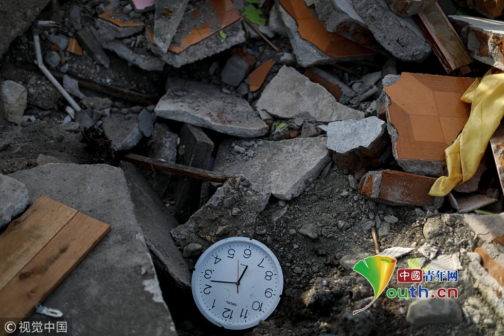 當?shù)貢r間2018年10月7日,印尼帕盧,兩名男子從地震廢墟中找回他們去世父母的畫像。圖片作者:JORGE SILVA/視覺中國