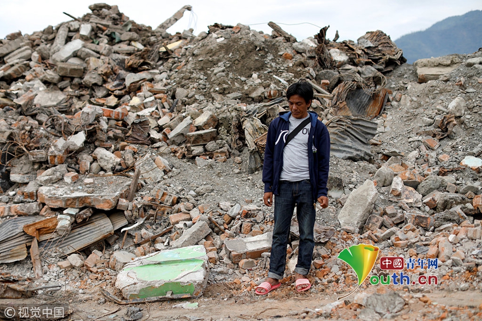 當?shù)貢r間2018年10月11日,印尼帕盧,43歲的農民Ahmad在廢墟旁邊,這里曾經是他的家。他希望能找到妻子和兩個女兒的遺體。他的三女兒被發(fā)現(xiàn)時受了重傷,現(xiàn)在正在醫(yī)院接受治療。