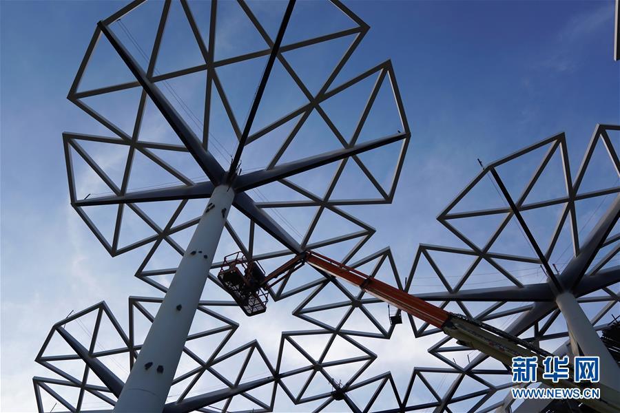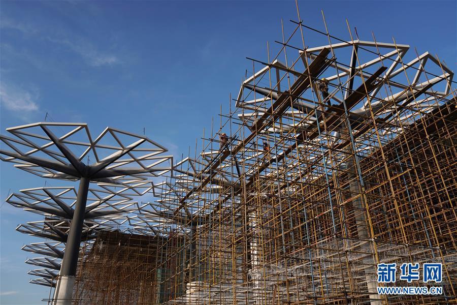 10月18日拍攝的建設(shè)中的北京世園會(huì)國際館。 新華社記者 鞠煥宗 攝