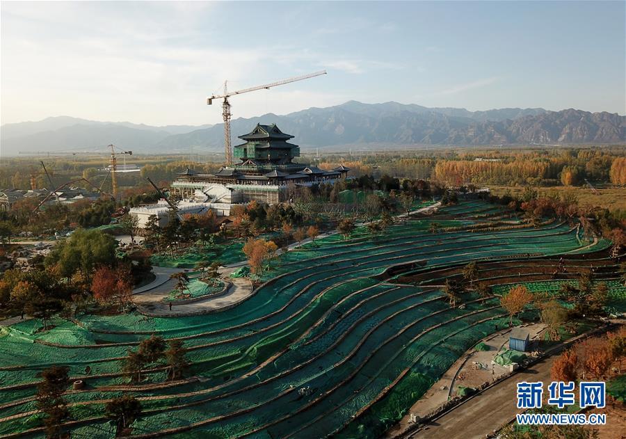10月18日拍攝的建設(shè)中的北京世園會(huì)永寧閣(無人機(jī)拍攝)。 新華社記者 羅曉光 攝