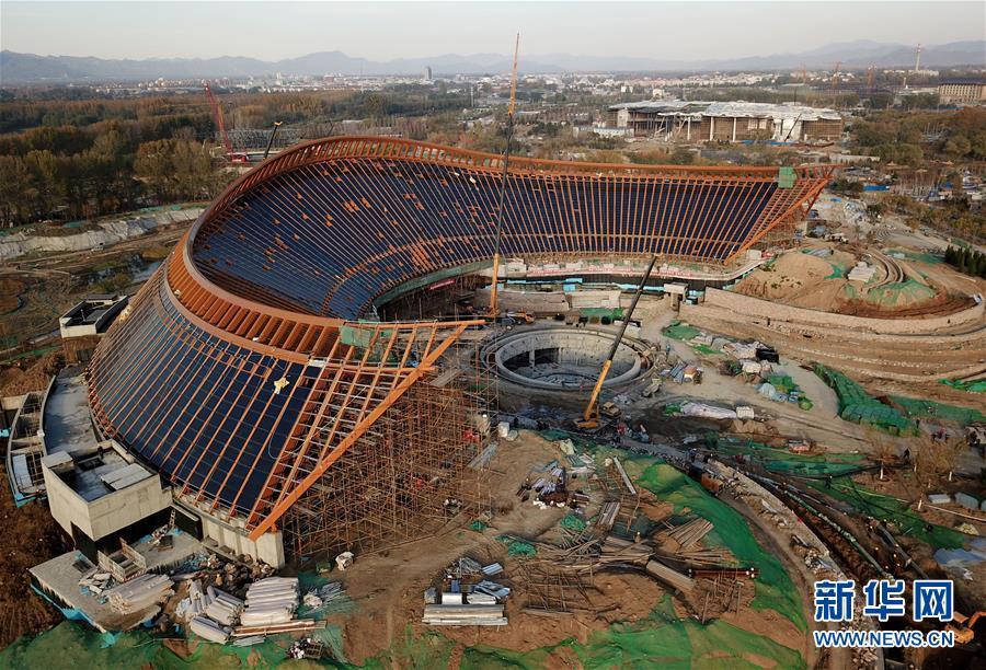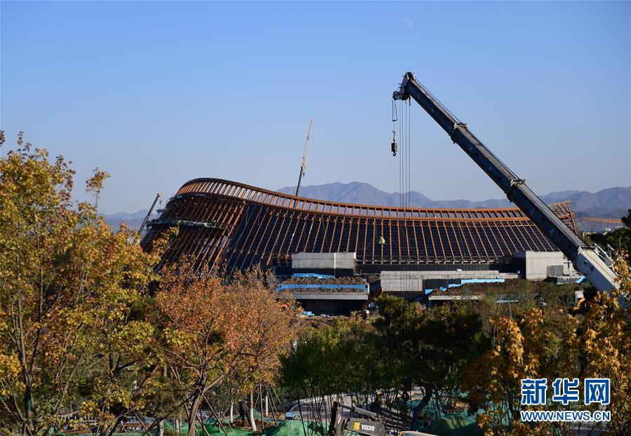 10月18日拍攝的建設(shè)中的北京世園會(huì)國際館。新華社記者 鞠煥宗 攝