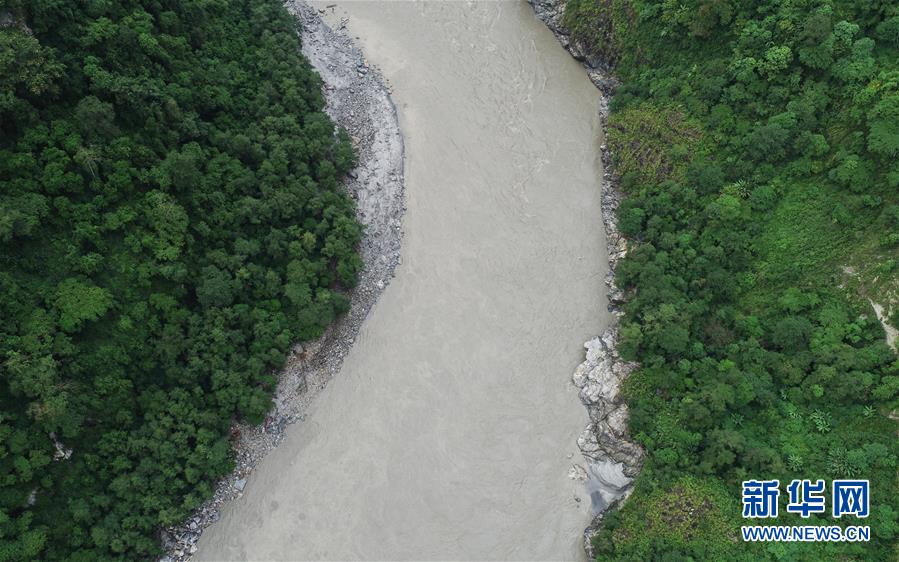 雅魯藏布江上的堰塞湖和堰塞體(10月18日攝)?!⌒氯A社記者 覺果攝