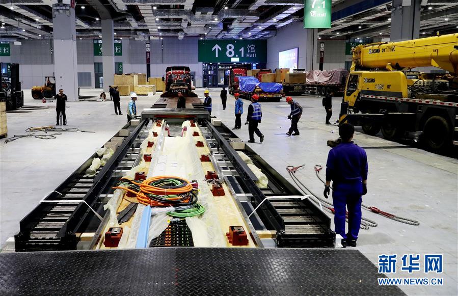 10月22日,“金牛座”龍門銑床床身(前)等待裝運(yùn)。 當(dāng)日,來自德國的首屆進(jìn)口博覽會最大展品——“金牛座”龍門銑床完成初步組裝,將運(yùn)往國家會展中心(上海)3號館進(jìn)行最后的安裝施工。這是德國瓦德里希科堡公司研發(fā)的機(jī)床設(shè)備,高約8米,占地面積約200平方米,將在智能及高端裝備區(qū)進(jìn)行展出。 新華社記者方喆攝