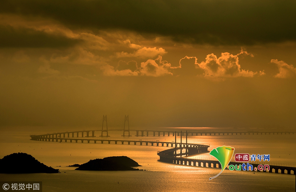 “超級工程”港珠澳大橋?qū)⒂?4日上午9時正式通車,一波美圖先睹為快。黃昆震 攝 圖片來源:視覺中國