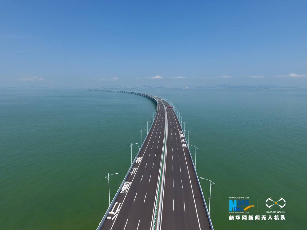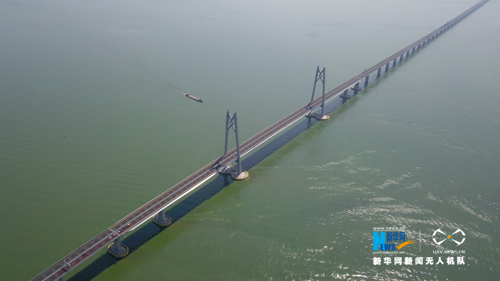 圖為新華網(wǎng)無人機隊航拍港珠澳大橋。新華網(wǎng) 黃璐璐 攝