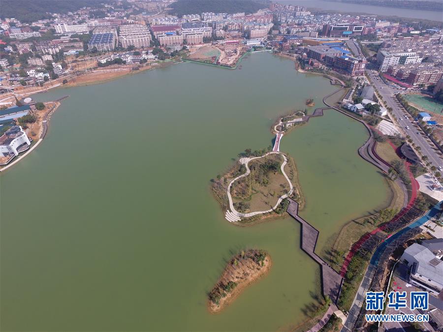 空中俯瞰長沙后湖全景(10月29日無人機拍攝)。 近日,湖南長沙后湖水環(huán)境綜合整治工程全面完工,沿湖生態(tài)環(huán)境舊貌換新顏,成為市民游客休閑散步的好去處。 新華社記者 龍弘濤 攝