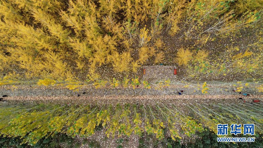 寧夏銀川市鳳凰公園秋景(10月20日無人機拍攝)。
