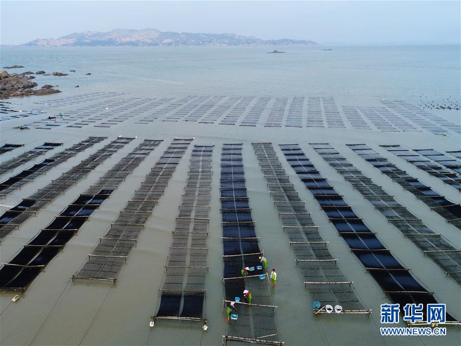 10月24日,福建莆田蔣山村村民在收獲紫菜。 新華社記者姜克紅 攝