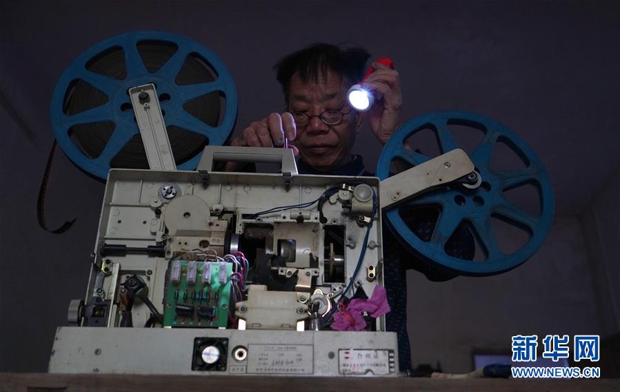 今年69歲的曾紀(jì)連是江西省于都縣寬田鄉(xiāng)的一名電影放映員。雖早已退休,他依然放不下電影放映這份工作,平均每月為村民放映電影達(dá)20場(chǎng)(次)。