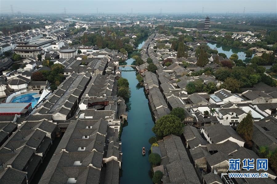 這是10月30日無(wú)人機(jī)拍攝的烏鎮(zhèn)互聯(lián)網(wǎng)國(guó)際會(huì)展中心。 第五屆世界互聯(lián)網(wǎng)大會(huì)將于11月7日至9日在浙江烏鎮(zhèn)舉行。 新華社記者 黃宗治 攝