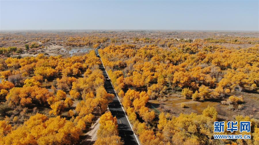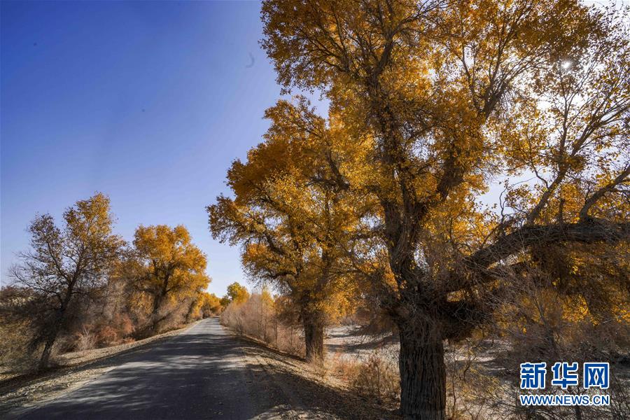 新疆尉犁縣胡楊林深處的一條小路(10月25日攝)。 10月中下旬,靜靜的塔里木河中下游一片金黃。胡楊深處,條條小路蜿蜒綿長(zhǎng)通向遠(yuǎn)方,引人入勝。 塔里木河是中國最長(zhǎng)的內(nèi)陸河,這一區(qū)域原始胡楊林分布較為集中。隨著塔里木河連續(xù)19次向下游生態(tài)輸水,為胡楊林“解渴”,塔河兩岸生態(tài)得到明顯改善,沙地面積逐年減少。 新華社記者趙戈攝