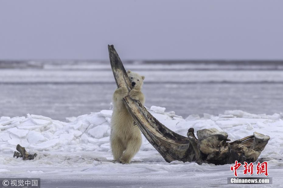 11月1日訊(具體拍攝時(shí)間不詳),美國(guó)阿拉斯加州,一只北極熊媽媽帶著幼崽們外出覓食,發(fā)現(xiàn)了一節(jié)長(zhǎng)4.5米的北極露脊鯨骸骨。75噸重的鯨魚對(duì)因紐皮亞特人來說是神圣的,他們每年要吃三次鯨魚,把骨頭放在指定的地方,讓北極熊吃完粘在骨頭上的碎肉。攝影師Eiji Itoyama為拍攝此照片在位于北冰洋邊緣的阿拉斯加卡克托維克村停留了5天。圖片來源:視覺中國(guó)