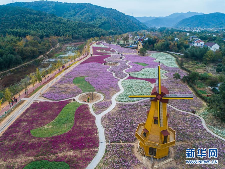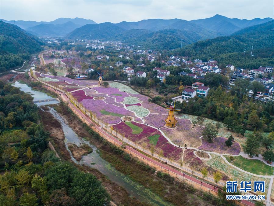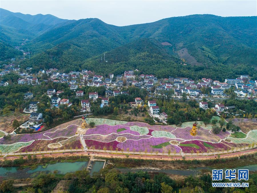 11月2日,空中俯瞰小浦鎮(zhèn)的“五彩花?!?,多彩的花海與金黃的銀杏林構(gòu)成了一幅美麗的秋季風(fēng)景(無人機拍攝)。 新華社記者 徐昱 攝