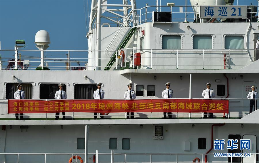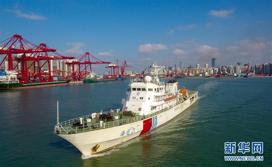 11月3日,海事執(zhí)法人員乘“海巡21”輪出發(fā)。當(dāng)日,隨著“海巡21”輪緩緩駛離??诤J卤O(jiān)管基地碼頭,由瓊桂粵海事部門共同開(kāi)展的瓊州海峽、北部灣及環(huán)海南島水域跨轄區(qū)聯(lián)合巡航執(zhí)法活動(dòng)揭開(kāi)序幕。新華社記者楊冠宇攝