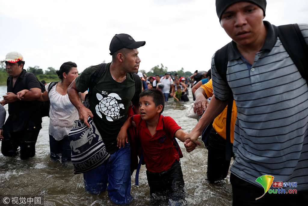 當(dāng)?shù)貢r(shí)間2018年11月2日,墨西哥與危地馬拉邊界,中美洲移民繼續(xù)向美國(guó)挺進(jìn)。圖片作者:UESLEI MARCELINO