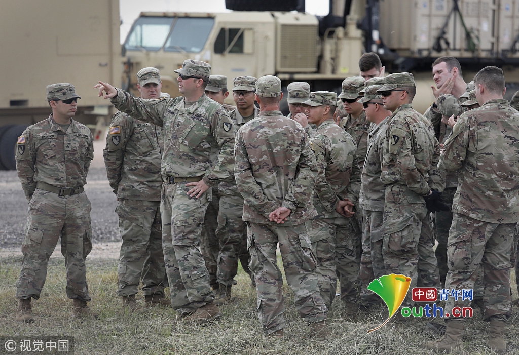 當(dāng)?shù)貢r(shí)間2018年11月4日,美國(guó)得克薩斯州Donna,美國(guó)士兵在美國(guó)與墨西哥邊境的入境口岸附近鋪設(shè)鐵絲網(wǎng)圍欄,應(yīng)對(duì)中美洲移民壓境。