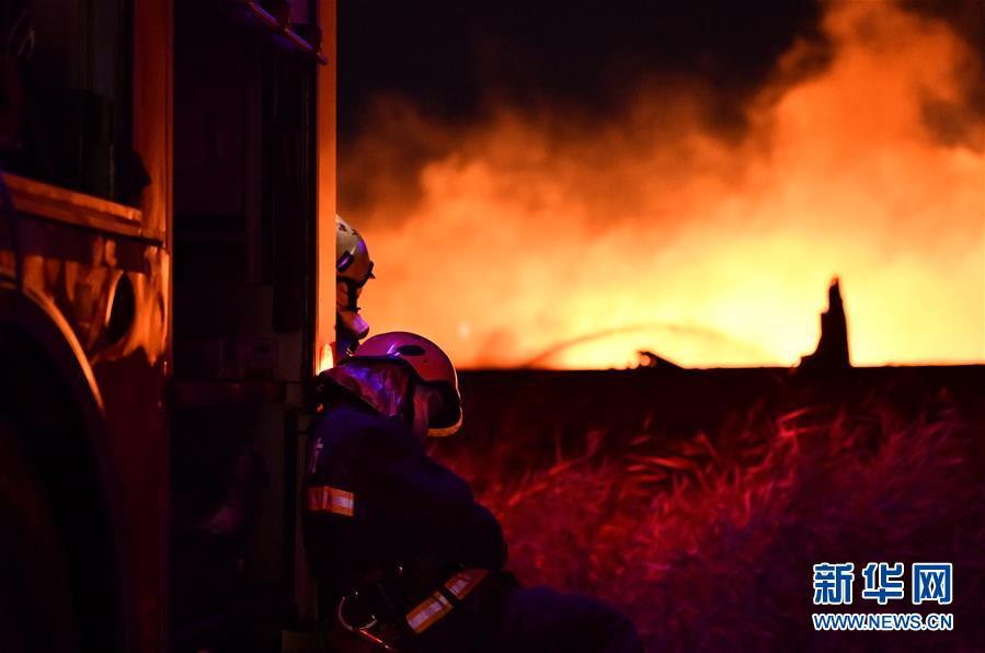10月28日,在天津大港開發(fā)區(qū)火災現場附近,奮戰(zhàn)數小時的消防員在休整。10月28日晚,天津濱海新區(qū)大港開發(fā)區(qū)的一處倉儲物流公司潤滑油倉庫發(fā)生火災。 新華社記者 李然 攝