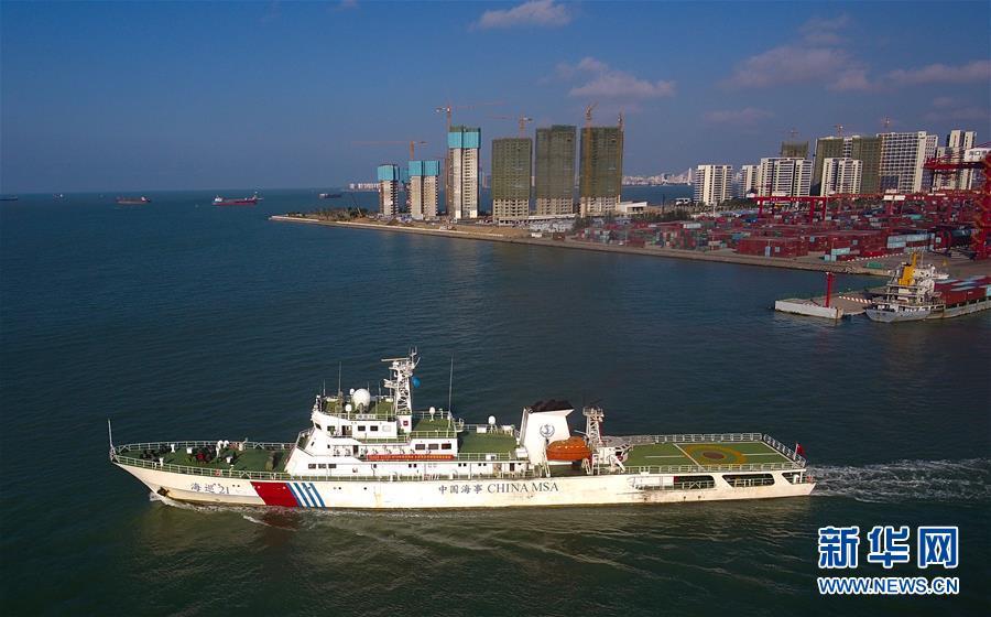 11月3日,“海巡21”輪準(zhǔn)備出發(fā)。 當(dāng)日,隨著“海巡21”輪緩緩駛離??诤J卤O(jiān)管基地碼頭,由瓊桂粵海事部門共同開(kāi)展的瓊州海峽、北部灣及環(huán)海南島水域跨轄區(qū)聯(lián)合巡航執(zhí)法活動(dòng)揭開(kāi)序幕。 新華社記者楊冠宇攝