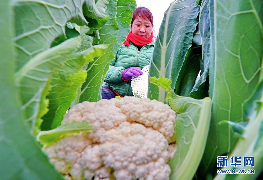 11月5日,唐山海港經(jīng)濟(jì)開發(fā)區(qū)王灘鎮(zhèn)東高各莊村的菜農(nóng)在收獲菜花。 新華社記者 楊世堯 攝