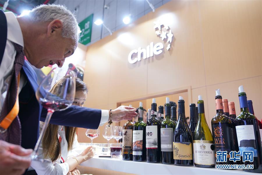 11月5日,一位男士了解智利葡萄酒。 當(dāng)日,首屆中國國際進(jìn)口博覽會(huì)在國家會(huì)展中心(上海)開幕。 新華社記者 孟鼎博 攝