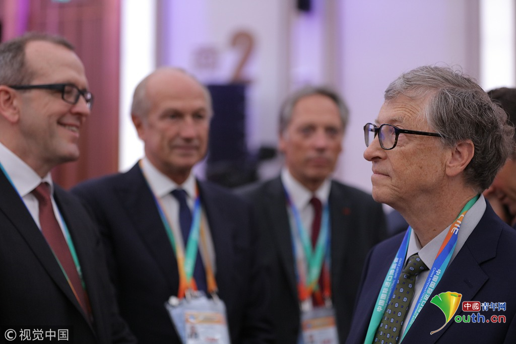 2018年11月5日,上海,中國國際進(jìn)口博覽會(huì)開幕,比爾蓋茨亮相會(huì)場(chǎng)。視覺中國