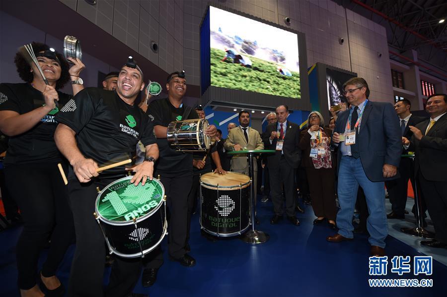 11月5日,一支來自巴西的樂隊(duì)在巴西展館表演。 新華社記者 韓瑜慶 攝