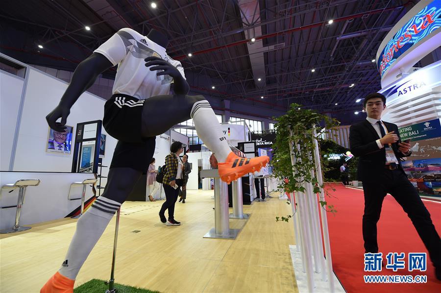 這是11月5日在英國(guó)展館內(nèi)展出的一座英格蘭足球超級(jí)聯(lián)賽冠軍獎(jiǎng)杯的復(fù)制品。 新華社記者 劉大偉 攝