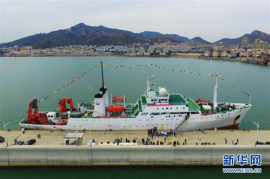 11月7日,“大洋一號(hào)”駛?cè)胛挥谇鄭u市嶗山區(qū)的青島海洋科學(xué)考察基地碼頭。 新華社發(fā)(王海濱 攝)