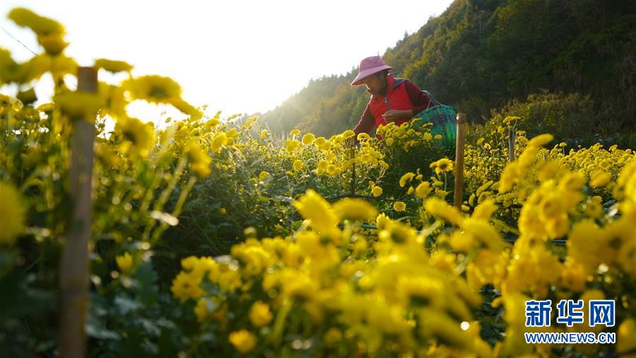 11月8日,婺源縣思口鎮(zhèn)農(nóng)戶在采摘皇菊。