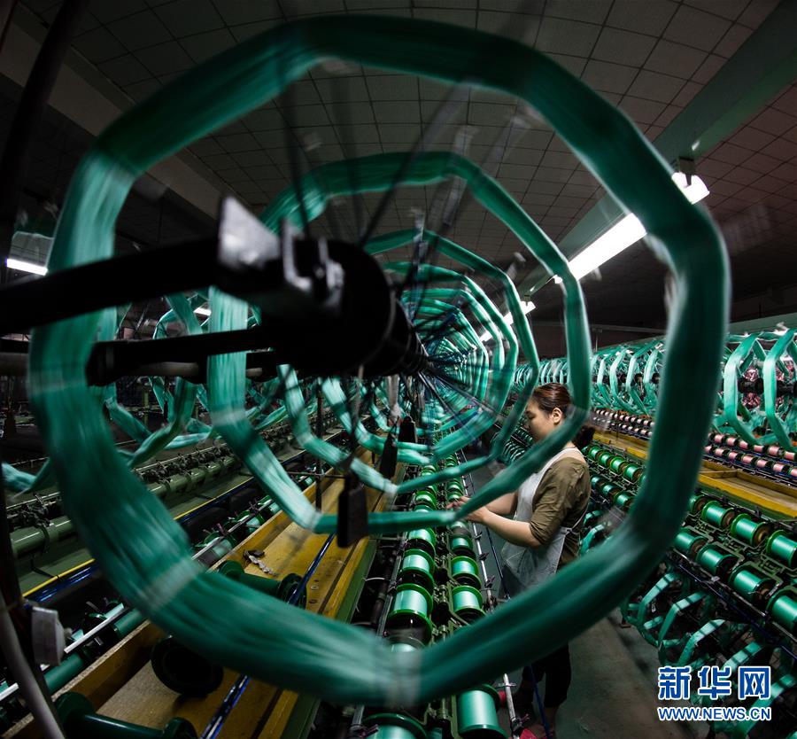 蘇州市吳江區(qū)盛澤鎮(zhèn)一家絲綢公司的工人在車間進行絡絲作業(yè)(2017年5月20日攝)。 新華社記者 李響 攝