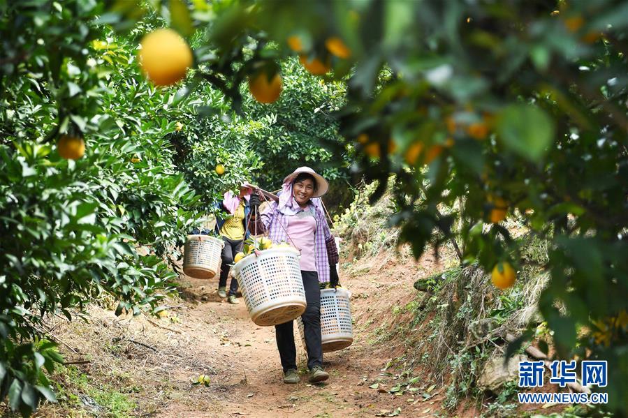 11月11日,江西省尋烏縣澄江鎮(zhèn)周田村的果農(nóng)在挑運(yùn)臍橙。