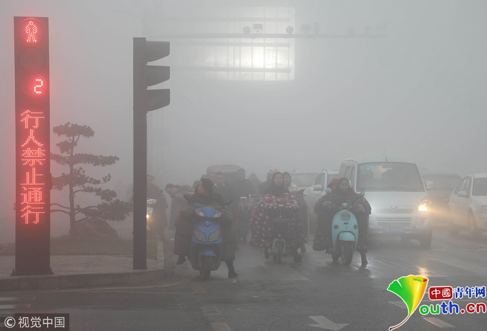 河南平頂山大霧彌漫 城區(qū)一片白茫茫