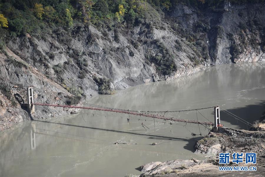 10月20日,西藏雅魯藏布江米林縣堰塞湖自然過流后,通往加拉村的大橋完全浮出江面。 10月19日13時30分,西藏雅魯藏布江米林縣堰塞湖開始自然過流。記者從應急管理部牽頭的聯(lián)合工作組獲悉,截至20日7時,雅魯藏布江堰塞湖壩前水位已下降56米,估算留存水量1.6億立方米,堰塞湖洪水威脅得到緩解,防洪安全風險大大減輕,并將繼續(xù)降低。 10月20日,記者乘坐直升機從空中拍攝了雅魯藏布江堰塞湖自然過流的畫面。 新華社記者普布扎西攝