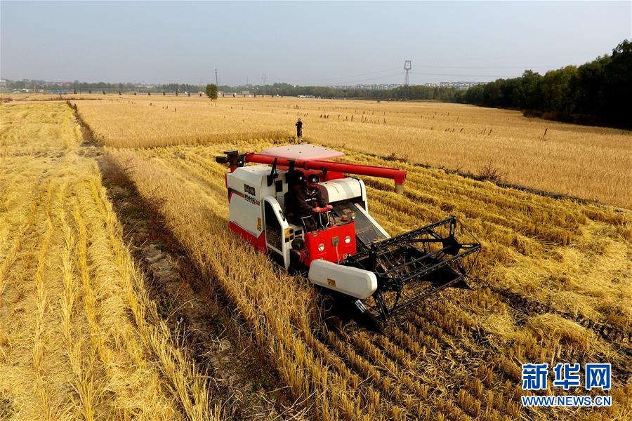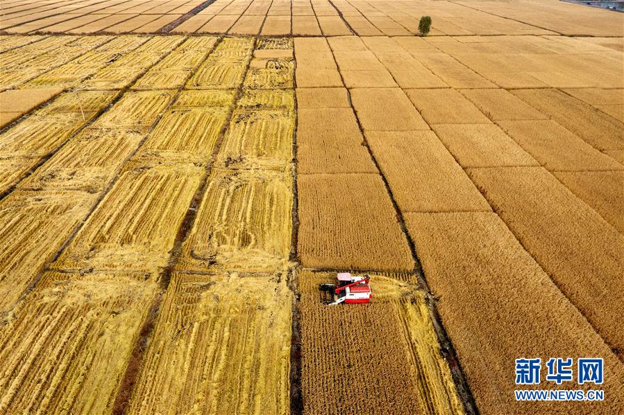 在太原市晉源區(qū)赤橋村,收割機在稻田里作業(yè)(10月17日無人機拍攝)。近日,山西省太原市晉源區(qū)2000多畝水稻迎來收割季。 金秋時節(jié),農(nóng)民們忙著收獲成熟的農(nóng)作物,喜迎豐收。 新華社記者 詹彥 攝