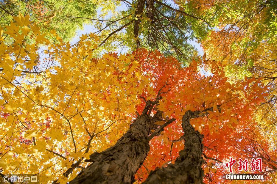 深秋時節(jié),山東濟(jì)南楔子山山脊兩邊種植的植被形成“一山雙色”景觀,令人稱奇。