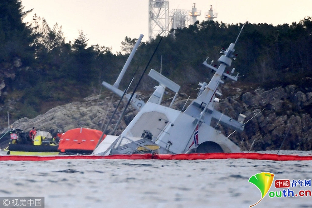挪威:被撞翻的海軍護衛(wèi)艦打撈出水