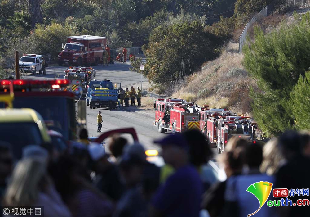 圖為文圖拉郡火場(chǎng)附近多輛消防車(chē)集結(jié)。