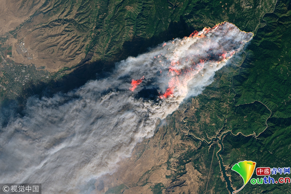 NASA公布加州山火衛(wèi)星照片 火勢向海邊蔓延