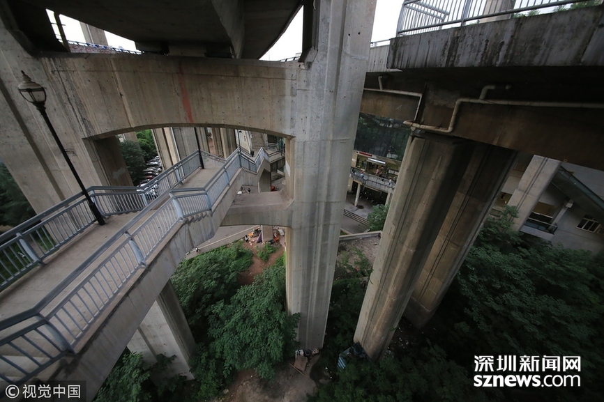 2018年5月29日,重慶,魔幻重慶又雙叒叕放大招!還有一個(gè)獨(dú)特的亮點(diǎn),重慶軌道交通3號(hào)線銅元局站,出口由一段長(zhǎng)梯銜接上方立交橋和下方的路面,與全國(guó)最高城市立交橋蘇家壩立交組成了獨(dú)特風(fēng)景,許多游客專門趕來拍照。