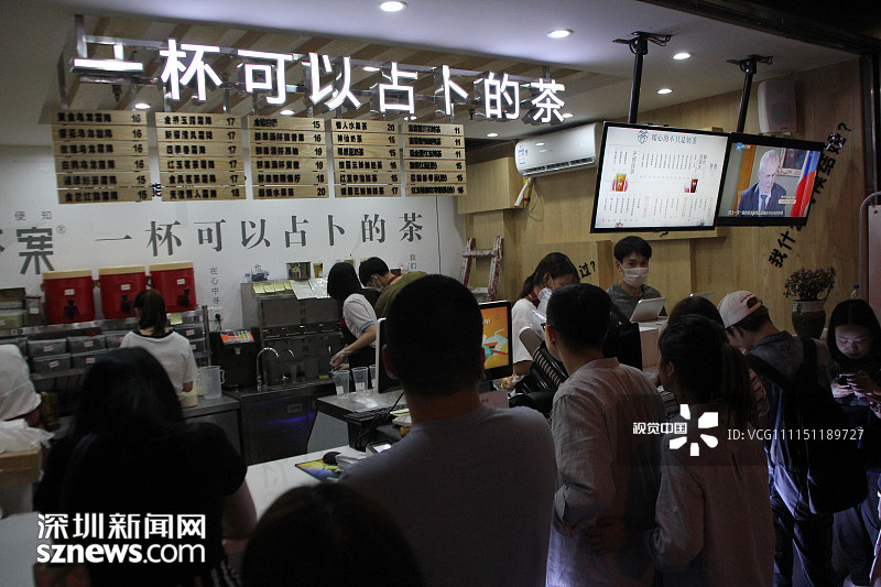 2018年4月21日,重慶,萬達(dá)廣場(chǎng)附近有一家新開業(yè)的網(wǎng)紅答案茶的冷飲店,這家答案茶冷飲店人氣異?;鸨?,門前已排起了兩條“長(zhǎng)龍”。 |